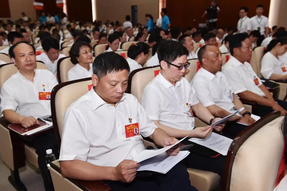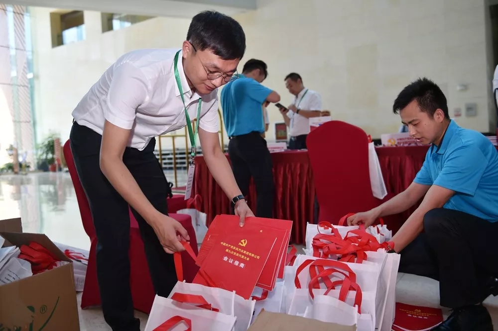 東風公司總部學術報告廳內,氣氛隆重熱烈,主席臺上方懸掛著“中國共產黨東風汽車集團有限公司第九次黨員代表大會”的會標,后幕正中是鐮刀和錘頭組成的黨徽,10面鮮艷的紅旗分列兩側。報告廳后面上方懸掛著“以習近平新時代中國特色社會主義思想為指引 加快建設卓越東風 開啟世界一流企業發展新征程”的橫幅。李紹燭同志主持大會。